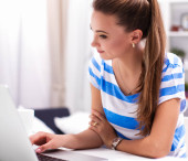 portret młodej kobiety dość rozmawia przez telefon i działa na laptopie w kuchni
