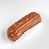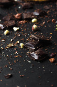 produkcja, przygotowanie żywności i koncepcja ludzi - cukiernik z woreczkiem tłoczącym płynną czekoladę do kształtu batonika w cukierni, zbliżenie