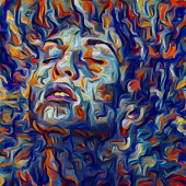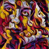 W kierunku serii Light. Portret kobiety wykonywany w abstrakcyjnym stylu malarskim na temat świata wewnętrznego, kreatywności i sztuki.