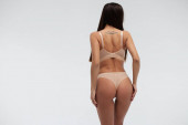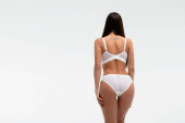 brunetka dziewczyna w czarnej bieliźnie i rajstopy na białym tle.