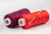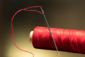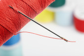 Zdjęcie "Oko igły z czerwoną nitką poliestrową. Szpula czerwonego poliestru nici do szycia w tle. Wybiórcze skupienie. Bokeh.." może być wykorzystywane do celów osobistych i komercyjnych zgodnie z warunkami zakupionej licencji Royalty-free. Obraz jest dostępny do pobrania w jakości wysokiej rozdzielczości do 5760x3840.