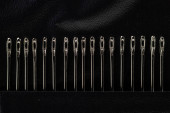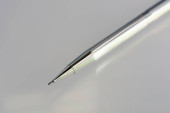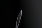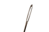 Makro igły, oko igły z odizolowanym na czarnym tle układem ostrości.