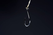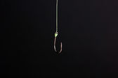 Zdjęcie "Haki wiszące na żyłce na czarnym tle. Pojęcie" może być wykorzystywane do celów osobistych i komercyjnych zgodnie z warunkami zakupionej licencji Royalty-free. Obraz jest dostępny do pobrania w jakości wysokiej rozdzielczości do 5760x3840.