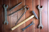 Zdjęcie "Brudny zestaw narzędzi ręcznych na drewnianych deskach." może być wykorzystywane do celów osobistych i komercyjnych zgodnie z warunkami zakupionej licencji Royalty-free. Obraz jest dostępny do pobrania w jakości wysokiej rozdzielczości do 5760x3840.