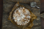 kwadratowe ciasto z kroplami czekolady. widok z góry