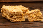 Zdjęcie "plasterek kwadratowego ciasta kukurydzianego na drewnie z ciastem kukurydzianym w tle." może być wykorzystywane do celów osobistych i komercyjnych zgodnie z warunkami zakupionej licencji Royalty-free. Obraz jest dostępny do pobrania w jakości wysokiej rozdzielczości do 5760x3840.