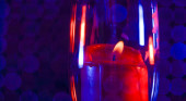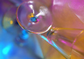 Szkło wykonane z kryształowo-podobnych materiałów sfotografowanych w studiu z kolorowym tłem