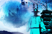 gejsza na zachodzie słońca
