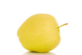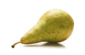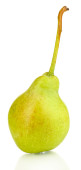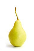 Jedna słodka soczysta gruszka, makro, wyizolowana na białym tle.