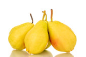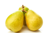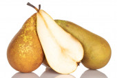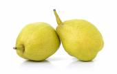 Dwie słodkie soczyste gruszki, makro, izolowane na białym tle.