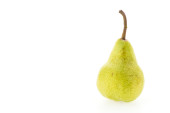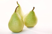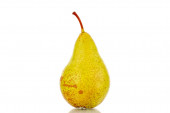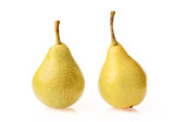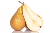 Dwie słodkie soczyste gruszki, makro, izolowane na białym tle.