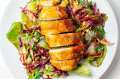 Chrupiący filet z piersi kurczaka z mieszaną sałatką i tartym burakiem, smaczny lunch