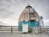 Zdjęcie "Drewniana wieża widokowa z spiralnymi schodami i drewnianymi belkami połączonymi wieloma śrubami." może być wykorzystywane do celów osobistych i komercyjnych zgodnie z warunkami zakupionej licencji Royalty-free. Obraz jest dostępny do pobrania w jakości wysokiej rozdzielczości do 5760x3840.