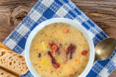 Tradycyjna rosyjska kapusta na drewnianym stole. Skupienie selektywne.