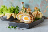 Zdjęcie "Domowej roboty świeży chleb z ziołami (pietruszka, tymianek, rozmaryn, koperek), czosnek, ser i pikantne masło na drewnianej desce." może być wykorzystywane do celów osobistych i komercyjnych zgodnie z warunkami zakupionej licencji Royalty-free. Obraz jest dostępny do pobrania w jakości wysokiej rozdzielczości do 5760x3840.