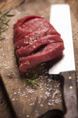 surowe mięso na pokładzie cięcia z przyprawami, nóż