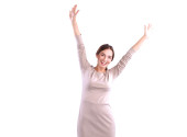 uśmiechający się włos z rąk w górę, na białym tle na białym tle