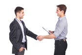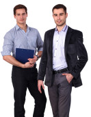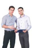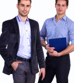 młody dwóch mężczyzn stojących z folderu, na białym tle na biały deseń