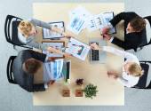 Biznesmeni podają sobie ręce, kończą spotkanie.