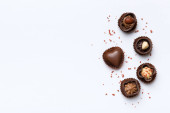 asortyment pysznych czekoladowych słodyczy pralinowych w kształcie serca na Walentynki, Dzień matki, Dzień Kobiet na białym tle