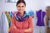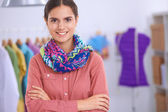 Nowoczesny młody projektant mody pracujący w studio.