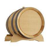 Dół dębowej beczki ze statywem na białym tle odizolowanym