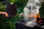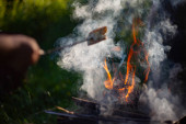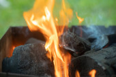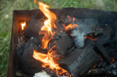 Zdjęcie "Drewno się pali. Palenie suchych gałęzi. Tworzenie węgla. Szczegóły pikniku. Niebezpieczne płomienie." może być wykorzystywane do celów osobistych i komercyjnych zgodnie z warunkami zakupionej licencji Royalty-free. Obraz jest dostępny do pobrania w jakości wysokiej rozdzielczości do 5760x3840.