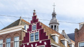 Krajobraz miejski, średniowieczna architektura w Brugii, Flandria, Belgia