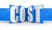Koszt Wpisany na 3D renderowane drewniane klocki na białym tle. Koncepcja działalności gospodarczej i kosztów