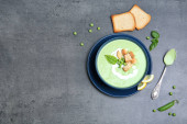 Zdjęcie "Pyszna zupa ze szparagów podawana na jasnoszarym stole, płaska leżanka. Miejsce na tekst" może być wykorzystywane do celów osobistych i komercyjnych zgodnie z warunkami zakupionej licencji Royalty-free. Obraz jest dostępny do pobrania w jakości wysokiej rozdzielczości do 5760x3840.