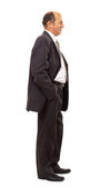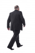 Tylny widok pewnego siebie mężczyzny w garniturze idącego do przodu
