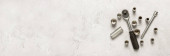 Montaż mebli, instrukcje montażu mebli na drewnianym tle. Widok z góry, płaski