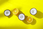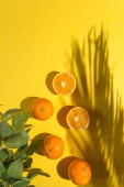 Świeże mandarynki pod promieniami słońca na beżowym tle