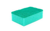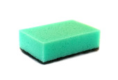 Zielona gąbka czyszcząca z ściernym czarnym scourer izolowane na białym