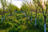 Zdjęcie "Piękny kwitnący sad jabłkowy. Koncepcja rolnictwa" może być wykorzystywane do celów osobistych i komercyjnych zgodnie z warunkami zakupionej licencji Royalty-free. Obraz jest dostępny do pobrania w jakości wysokiej rozdzielczości do 5760x3840.
