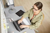 Zdjęcie "Młoda uśmiechnięta bizneswoman w brązowej bluzce przewijająca się w telefonie komórkowym" może być wykorzystywane do celów osobistych i komercyjnych zgodnie z warunkami zakupionej licencji Royalty-free. Obraz jest dostępny do pobrania w jakości wysokiej rozdzielczości do 5760x3840.