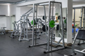 siłownia nowoczesna sala fitness. pusty hol z symulatorami na różnych mięśniach.
