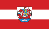 Widok z góry flagi Bremerhaven. Republika Federalna Niemiec. Nie ma masztu. Projekt samolotu, układ. Tło bandery
