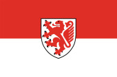 Widok z góry flagi DEU Braunschweig. Republika Federalna Niemiec. Nie ma masztu. Projekt samolotu, układ. Tło bandery