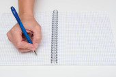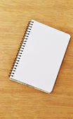 Pusty notatnik spiralny z piórem na białym stole, koncepcja nauki, edukacji i planowania, przestrzeń do kopiowania
