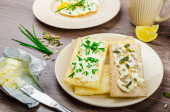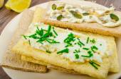 rozprzestrzeniania ostry pieczywa chrupkiego z ser ze szczypiorkiem i ostre pieczywa chrupkiego z twaróg rozprzestrzeniania szczypiorek i nasiona