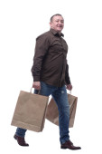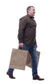 elegancki nowoczesny człowiek dojrzały trzymać torby na zakupy i przedstawić