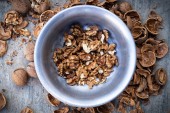 Tło orzechów mieszanki organicznej. Pieczona mieszanka na przekąskę. Zdrowe jedzenie z pokarmem z natury