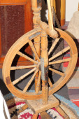 Kręcące się koło używane do kręcenia wełną owczą w starym irlandzkim domku