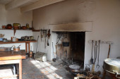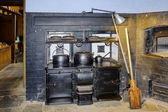 Otwarty ogień używany do palenia trawy i Pete do gotowania w starym irlandzkim domku