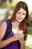 Przepełniona radością ładna dziewczyna nosi różowe ciuchy z muzyką. Azjatycka nastolatka używać smartfona i cieszyć się ulubioną playlistę za pośrednictwem słuchawek stereo, relaksujące śpiewy wraz z beztroskim wyrazem.