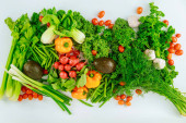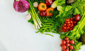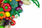 Świeże kolorowe warzywa na białym tle. Widok z góry.