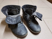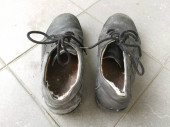 stare skórzane suszenie butów na betonowych kolanach.