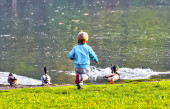Zdjęcie "Rudy chłopiec karmi kaczki w stawie" może być wykorzystywane do celów osobistych i komercyjnych zgodnie z warunkami zakupionej licencji Royalty-free. Obraz jest dostępny do pobrania w jakości wysokiej rozdzielczości do 5760x3840.