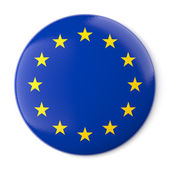 Flaga Unii Europejskiej. Okrągła odznaka. Odizolowany na szarym tle. Ilustracja 3D. Znaki i symbole.